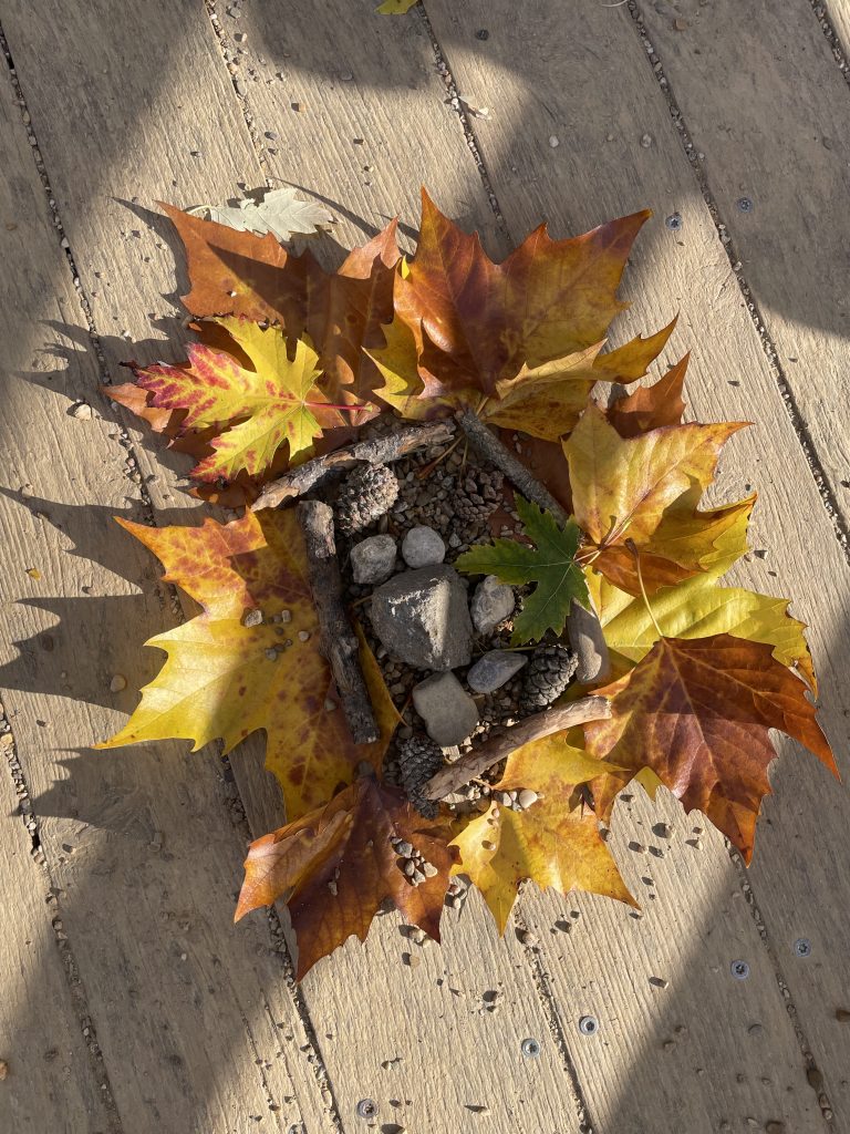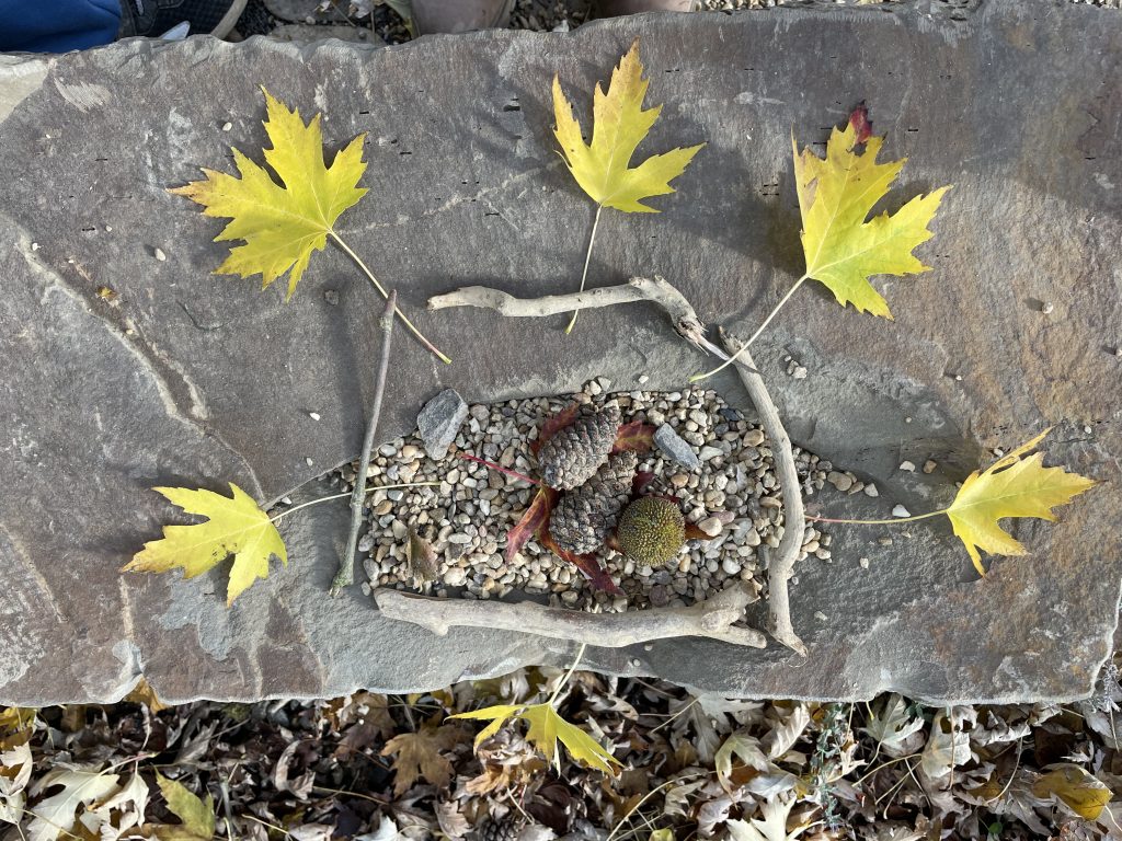Beim Gestalten entstanden nicht nur kunstvolle Muster, sondern auch ruhige Momente der Konzentration und Entspannung. Die Kinder lernten, wie aus einfachen Dingen aus der Natur kleine Kunstwerke entstehen können – und wie wohltuend es ist, mit allen Sinnen draußen zu arbeiten.
